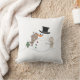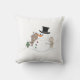 Illustratie van een kerstsneeuwpop in de stijl van de cartoon in een sneeuwscène met sneeuwbedekking en een boom op de achtergrond.