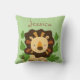 Fun oerwoud leeuw en bladdesign. Patroonontwerp en illustraties van Valarie Wade. De tekst kan worden aangepast. Voeg de naam van je kind toe aan de kostbare kussen van de kinderkamer.