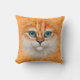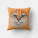 Het gezicht van een vloeiend oranje kattenkatje met doorboren blauw-groene ogen. Realistisch kunstwerk gemaakt van een origineel oliesschilderij van de kunstenaar Crista S. Forest.