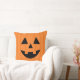 Dit schattige Halloween-ontwerp met kussen is voorzien van een vriendelijk glimlach-hefboom-o-lantaarns pompoen in oranje en zwarte kleuren.