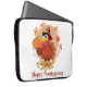 Happy Thanksgiving-typografie met een Turkije, herfstbladeren en pompoenen, om Thanksgiving te vieren en voor alles dankbaar te zijn.
