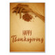 Fijne Thanksgiving, illustratie met tarwe, oren en korrels op een klassieke bruine achtergrond.