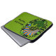 Een sleeve voor uw laptopcomputer met een glimlachende cartoon-doosschildpad. Hij heeft meerdere groene tinten en loopt op een gazon en er is een blauwe en oranje hemel achter hem.