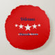 Ronde kussen, met woorden over veteranen," bedanken veteranen je" met rode achtergrond, en witte sterren tussen de woorden, Geschikt om veteranen dag te vieren.