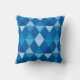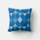 Mid-Century Modern Harlequin-patroon gemaakt van gestapelde driehoeken die diamanten vormen - schoppen van bleek chambrey tot lichtdenim blauw op een middelgrote blauwe achtergrond werpt kussen met kussen
