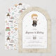 Celebrate your little wizard’s birthday with this charming invitation featuring a cute chibi-style illustration inspired by Draco Malfoy from the Harry Potter series. The design showcases the character in a Slytherin-themed robe holding a wand, surrounded by colorful starburst accents. A parchment-style border frames the arched layout, while playful wizarding icons decorate the back of the card, including books, cauldrons, and magical creatures. Personalize with your child’s name, age, and party details to create a magical first birthday or any age celebration that’s sure to delight Harry Potter fans of all ages.