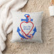 Rood en blauw hart nautisch anker met een touw op een roestrijke houten achtergrond. De naam van de boot is editable.