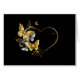 Gouden hartvormig frame, versierd met goud, juwelen en witte vlinders op een zwarte achtergrond.