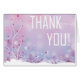 Een roze sneeuw gebaseerd dank je kaart met een lege binnenkant om een noot te schrijven.