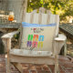 Hartgetrokken in het zand, ik hou van de strand, aangepaste kussen buiten. Sandy oceaan met kleurrijke kleuren-van-de-regenboogteenslippers voor het strand.