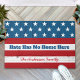 "Hate heeft hier geen thuis". Wees trots en laat de wereld weten hoe goed dit land is en kan zijn met dit doordachte, opvallende, grafische, gepersonaliseerde doormat. Navy blue bold typografie en rode handgeschreven script, bijtende, , vetgedrukte, grafische, rode en witte strepen en witte sterren op een blauwe, met panelbekleding gepanelde achtergrond van het Amerikaanse vlaggenland. Kies uit twee formaten: 18 x 24 en 24 x 36 inch. Geweldig voor de vierde juli, en voor elk moment van het jaar! Typ gewoon de naam van je keuze en je kunt dit patriottische slaapsel gemakkelijk personaliseren. Stuur me alstublieft alle vragen of verzoeken.