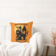 Haunted House Halloween gooi kussen! Sinaasappel en zwart met een spookhuis, spook in spookhuis en rondvliegen, en een vliegende heks op bezemsteel!