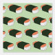 Hawaiiaanse food thema behang met traditionele musubi sushi snacks patterend over een lichtgroene achtergrond. Het is perfect om een muur in je keuken te creëer, of om een Hawaiiaans, Japans of Koreaans restaurant te versieren