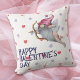 Deze schattige Valentijnsdag gooit een kussen voor je liefje met een afbeelding van een Cupid gnome met een lange, stromende witte baard die fungeert als zijn "Lady Godiva" vakantiekostuum. Hij trekt zijn boog terug om een pijl in een van de vele roze en blauwe harten op een witte achtergrond te schieten. In de blauwe tekst staat "Happy Valentine's Day". Grappig, en toch ook een beetje lief! De achterkant van de kussen heeft hetzelfde hartontwerp zonder het kakeltje, maar met uw aangepaste tekst, die gemakkelijk kan worden gewijzigd of verwijderd.
