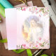 Voorzijde: zij verlicht de engel met witte robe met vleugels en glanzen naar beneden, omringd door roze floralen. Achterzijde: Eenvoudige paarse roze draai met witte lijnen om te schrijven. Ideaal voor scrapbooking of junk journaling.