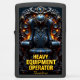 This imposing design is a powerful, high-tech tribute to the absolute command held by the heavy equipment operator. The image is dominated by an intricate, mechanical throne or highly advanced control seat, finished in a cool, deep blue and black metallic texture. The chair is studded with industrial metallic components and surrounded by glowing orange and blue gauges, symbolizing the vast power and critical technical monitoring required to manage colossal machinery. This seat is the ultimate "operator's throne," representing the centralized control and authority the professional wields on the job site. The design conveys a sense of intense focus, precision, and mastery over the mechanical world. The bold, large text "HEAVY EQUIPMENT OPERATOR" is prominently displayed, making this lighter an excellent, unique gift that celebrates the operator's experience and authoritative control over their complex equipment.