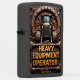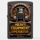This powerful design is a rugged, unapologetic tribute to the demanding life of the heavy equipment operator specializing in the toughest earthmoving jobs. The central image features a robust, yellow front-end loader (wheel loader), with its large tires and cabin viewed head-on. The machine is set against a backdrop of dark, rocky earth and dirt, which is dramatically contained within a circular, rustic metal emblem resembling weathered iron or copper. This aesthetic emphasizes the raw, unrelenting nature of construction, quarry, and mining work. The design beautifully conveys the heavy-duty, durable quality of the equipment and the steadfast resilience of the professional who operates it. The large, bold, golden text "HEAVY EQUIPMENT OPERATOR" is prominently displayed, making this lighter an excellent, strong gift that celebrates the experience, grit, and essential role of the operator on the job site.
