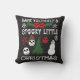 Dit heerlijk griezelige vakantiekussen biedt een gothic-stijl spin op de traditionele kerstmotieven met sneeuwvlokken en stervormen gevormd uit witte skeletten botten, schedelvormige kerstversieringen en hulstbessen, griezelige kerstkransen en -bomen en ghoulish ornamenten en sneeuwpoppen. Mijn illustraties in groen, grijs, rood en wit staan op een zwarte achtergrond. Mijn graphics begeleiden de slogan HAVE SELF A SPOOKY LITTLE CHRISTMAS gespeld in benauwde witte schedel en botvormige letters. De achterkant heeft een coördinerend spookachtig kerstpatroon.