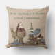 Primitieve stijlkussens zijn perfect voor de kerstversiering van je thuisland. Voorontwerp shows Santa, zijn slee, een rendier en speelgoed, met een kerstboom op de achtergrond. Aan de andere kant shows we een kerstboom met cadeaus onder en een griezelige sneeuwman.