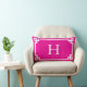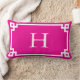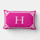 Heet Roze en Wit Grieks Sleutel Monogram Kussen
