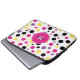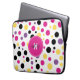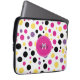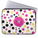 Heet Roze Wit Monogram Polka Dots Laptop Sleeve. Een leuk en fris ontwerp met verschillende polka stippen in retro roze, maagdenpalm, geel en zwart op een witte achtergrond. Personaliseer de laptophoes met uw monogram en naam en voeg een beetje speelsheid toe aan uw dagelijkse leven met dit kleurrijke, vrolijke ontwerp.