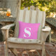 Helder Roze Initiaal Monogrammed Outdoor Kussen. Decoratief buitenkussen met een enkel initiaal. Personaliseer snel en gemakkelijk.