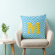 Heldere Aqua en wit met geel monogram Zig Zag Kussen