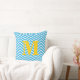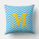 Heldere Aqua en wit met het Bright Gele Moderne Monogram Zig Zag Pattern Sierkussen