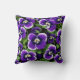 Het grafische ontwerp van levendige paarse pansies op dit kussen met worp straalt een artistieke flair uit en voegt een vleugje elegantie en plezier toe aan uw leefruimte.