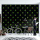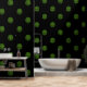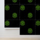 Gothic Fans zullen vooral dol zijn op dit coole schil- en plakvinylbehang met een herhalend patroon van felgroene neonachtige suikerschedellijntekeningen over een effen zwarte achtergrond.