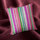 Heldere pastelstrepen van roze, groen, oranje, paars en wit maken een kenmerkende en kleurrijke sofa-kussen. Het patroon wordt aan beide zijden herhaald.