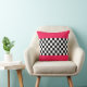 Een zwart-wit klassiek schaakbordpatroon, met een heldere, levendige roze.