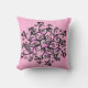 Deze decoratieve kussen in de buitenwereld hebben een cluster van helder fancy licht en donkerroze harten op zwarte rollen voorzien van zwarte stippen op een levendige roze achtergrond aan de voor- en achterkant.