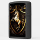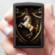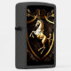 Deze opvallende Zippo Lighter is voorzien van een afbeelding van een abstract sierschild in stijl met een heraldische gouden kweekpaard op zwarte achtergrond. Het is een symbool van snelheid, intelligentie en mannelijkheid. Het maakt een geweldig kerstcadeauidee.