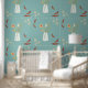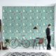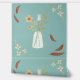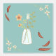 Eenvoudige minimale illustratie van herfstbloemen in een pot op een mintgroene achtergrond.