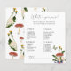Prachtige paddenstoel thema uitnodiging met waterverf paardenbloemen en bessen, vlinder, vlieg agarics paddenstoelen.