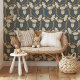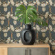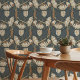 Transformeer uw huis met het verfijnde "Autumn Elegance Birds & Vines" behang. Dit tijdloze ontwerp is voorzien van gestileerde vogels op elegante wijnstokken en bloemmotieven, weergegeven in warme herfsttinten van terracotta, beige en diepgroen tegen een gedempte leisteen blauwe achtergrond. De harmonieuze mix van kleuren en ingewikkelde patronen roept een gevoel van charme en natuurlijke schoonheid op, ideaal voor het toevoegen van een vleugje elegantie aan elke kamer. Ideaal voor woonkamers, slaapkamers of eetruimtes, dit behang brengt een gezellige en uitnodigende sfeer in uw interieur.