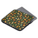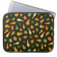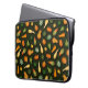 Deze laptophoes heeft kleine gastronomen in tinten groen, geel en oranje op een donkergroene achtergrond.