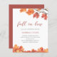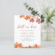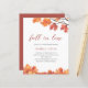 papieren vrijgezellenfeesten uitnodigingen, met een tak van een boom in de herfst en herfstbladeren in tinten van sinaasappel, roest, geel en bruin op een strakke witte achtergrond. Dit is een betaalbare papieren uitnodiging. U bent van harte welkom om onze winkel Peony Design te bezoeken om deze uitnodiging op kaart of digitaal aan te schaffen.