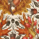 Met de hand beschilderde konijnen- en herfstflora- bladeren; paddenstoelen; eikels en bessen