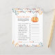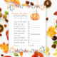 Een beetje pompoen is onderweg. Vier met deze baby cartoon pompoen thema voor baby shower feest! Waterverf schattige cartoon kawaii pompoen met herfstblad (pet) en herfstblad pet. Op de achterzijde van de kaart staan herfstbladeren.