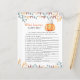 Een beetje pompoen is onderweg. Vier met deze baby cartoon pompoen thema voor baby shower feest! Waterverf schattige cartoon kawaii pompoen met herfstblad (pet) en herfstblad pet. Op de achterzijde van de kaart staan herfstbladeren.