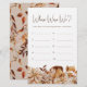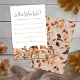 Voeg een leuk en boeiend element toe aan je vrijgezellenfeest met het "Herfst in Love Autumn Vrijgezellenfeest Kaart Collectie". Het 'Where Were We?'-spel heeft een coördinatiepatroon op de rug en prachtige handgeschilderde waterverf bladeren, dahlia's en rozen in rijke herfst tinten. Het samenhangende ontwerp zorgt ervoor dat uw evenement warmte en charme uitstraalt. Laat je vrijgezellenfeest een gedenkwaardig feest zijn vol gelach en schoonheid.