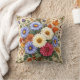 Mooie blauw en crème asters combineren met magenta en oranje dahlia's, omringd door herfstbladeren maakt een prachtig werpkussen voor de herfst.