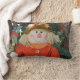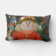 Een vogelverschrikker heeft een herfstbloementrui en een oranje pet aan.
