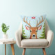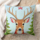 Gedetailleerde illustratie van een hert met geweien in een sereen, besneeuwd landschap met groen en paddenstoelen.