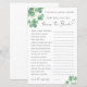 Lucky in Love St. Patrick's Day - Hoe goed ken je de bruid? Vrijgezellenfeest spel. Vier de bruid-to-be met deze leuke en feestelijke activiteit, ideaal voor een St. Patrick's Day vrijgezellenfeest. Het spel bevat een lijst met vragen over de bruid die langs de linkerkant loopt, met ruimte voor gasten om hun antwoorden aan de rechterkant te schrijven. Waterverf Shamrock accenten versieren de linker bovenhoek en de rechter onderhoek voor een feestelijke touch. Het ontwerp maakt gebruik van een mix van elegant handgeschreven script en schone seriële lettertypen voor een charmante en gemakkelijk te lezen lay-out. U kunt de vragen aanpassen aan de persoonlijkheid en stijl van de bruid, evenals lettertypen, tekst en kleuren aanpassen aan het thema van uw evenement. Deze activiteit is een vrolijke manier om te toasten op "Lucky in Love" met de aanstaande bruid!