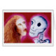 Deze kaart kenmerkt een grillig paar-een vrouw en een skelet-betrokken in intiem gesprek. Het toont de levendige rode achtergrond van de oorspronkelijke waterverf, die dramatisch contrasteert met de witte botten van het vrolijke skelet en de zwarte schaduwen. Het biedt een ongebruikelijke manier om "ware liefde" en de passie van de Valentijnsdag aan te nemen en maakt een geweldige valentijn voor een speciaal en ongewoon iemand.