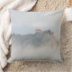 Foto gooit kussen met een historisch kasteel van Bled, gebouwd op de stenen langs het meer van Bled, omringd door wolken en mist op de grond, alsof het een kasteel is dat in de lucht is gebouwd, in Bled, Slovenië.