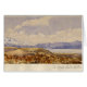Waterverf schilderij die het Great Salt Lake vanaf een afstand toont, met heuvels en met sneeuw bedekte bergen verder.
